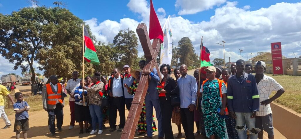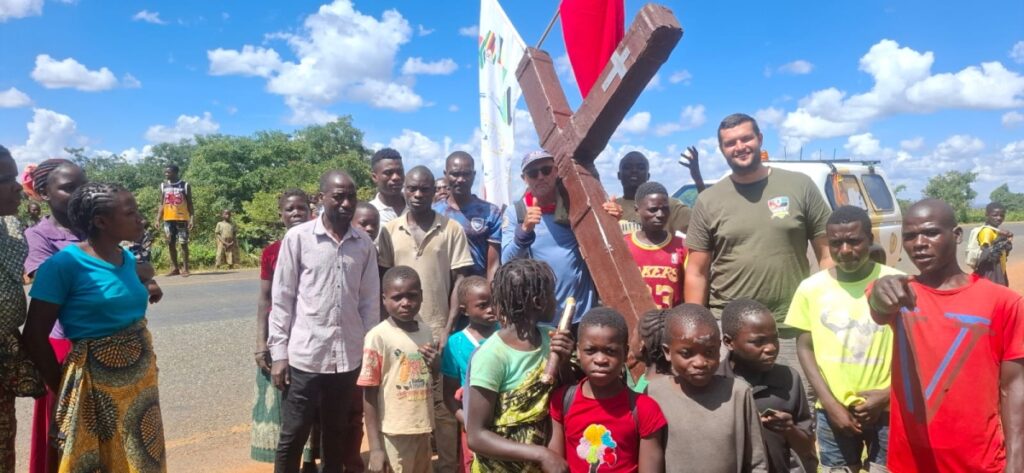 Evangelist Reini Coetzee reached another significant milestone in his 10 000 km Crosswalk Africa mission today when he wheeled his wooden cross from Mozambique into Malawi at the Dedza border post.